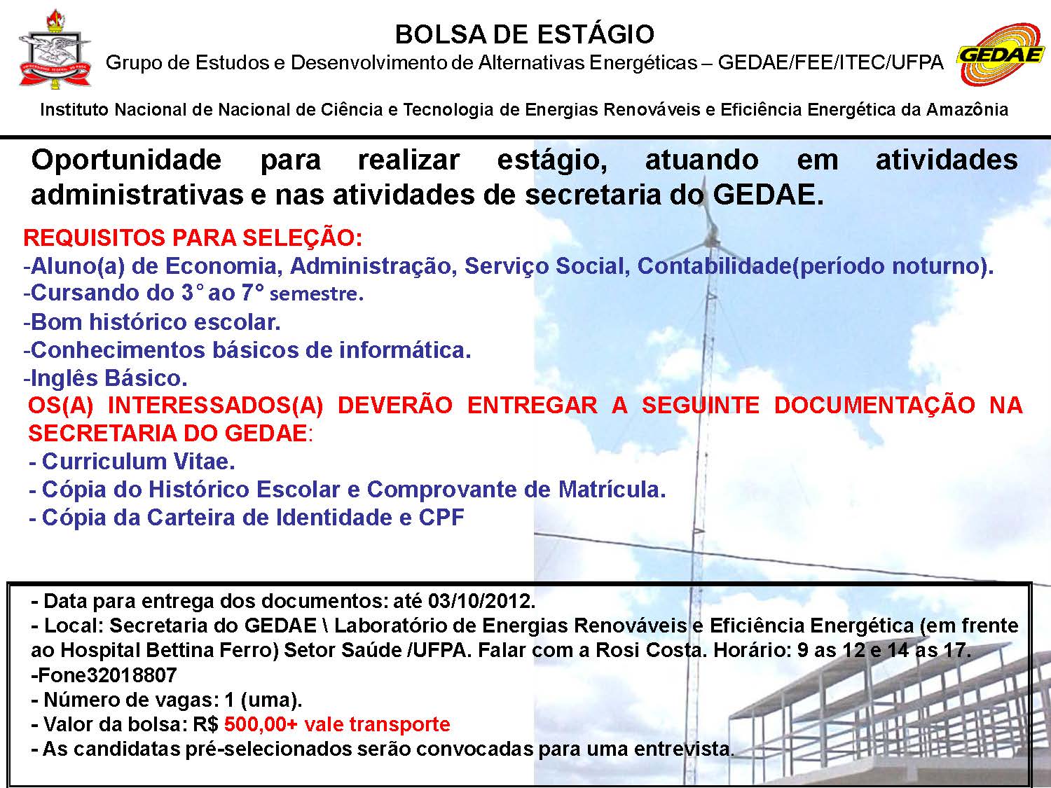 Seleção de bolsistas para o GEDAE (Administração, Contabilidade, Economia e Serviço Social)